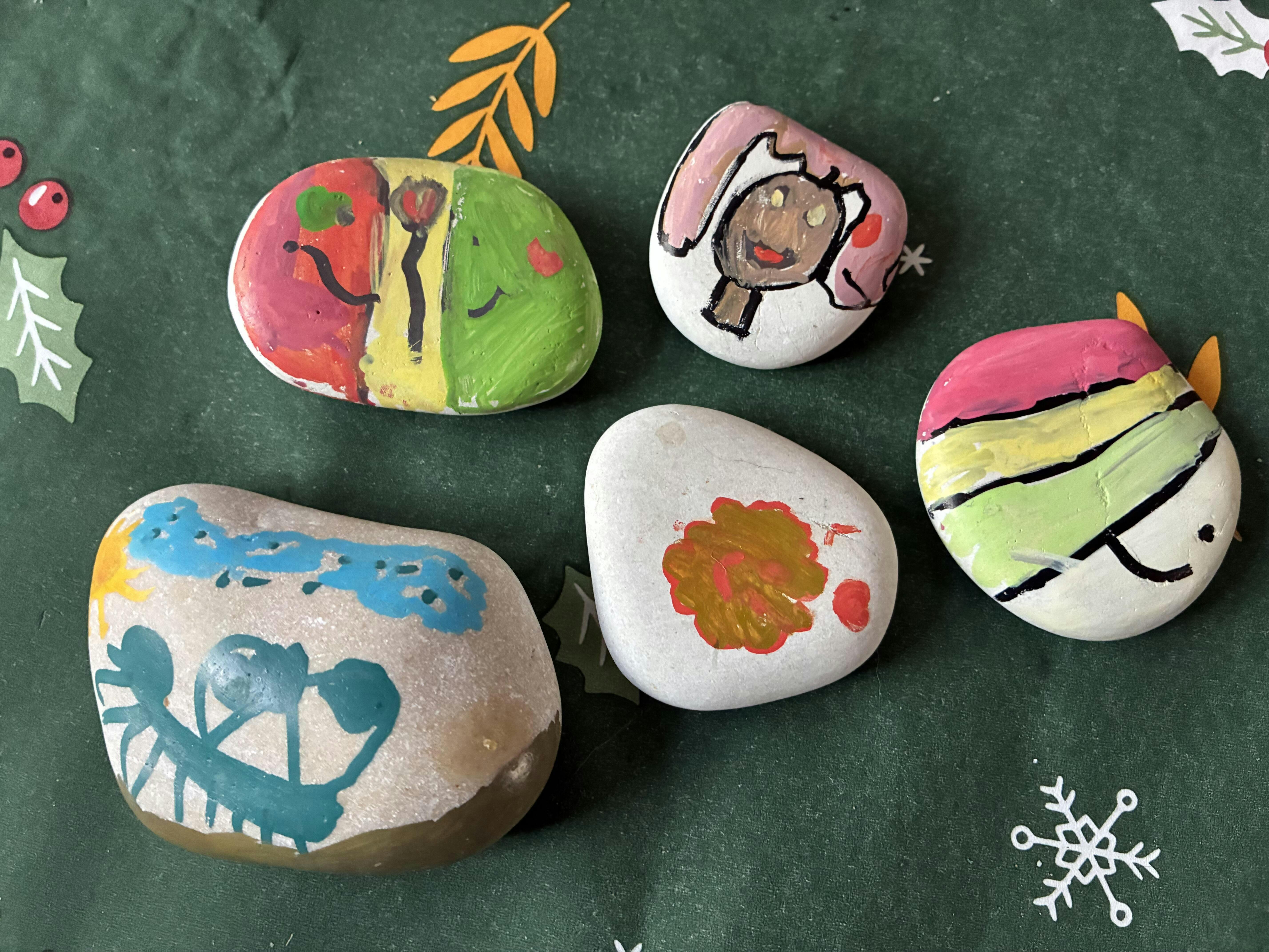 Maak kleurrijke illustraties, schrijf inspirerende woorden of geef je stenen cadeau.
